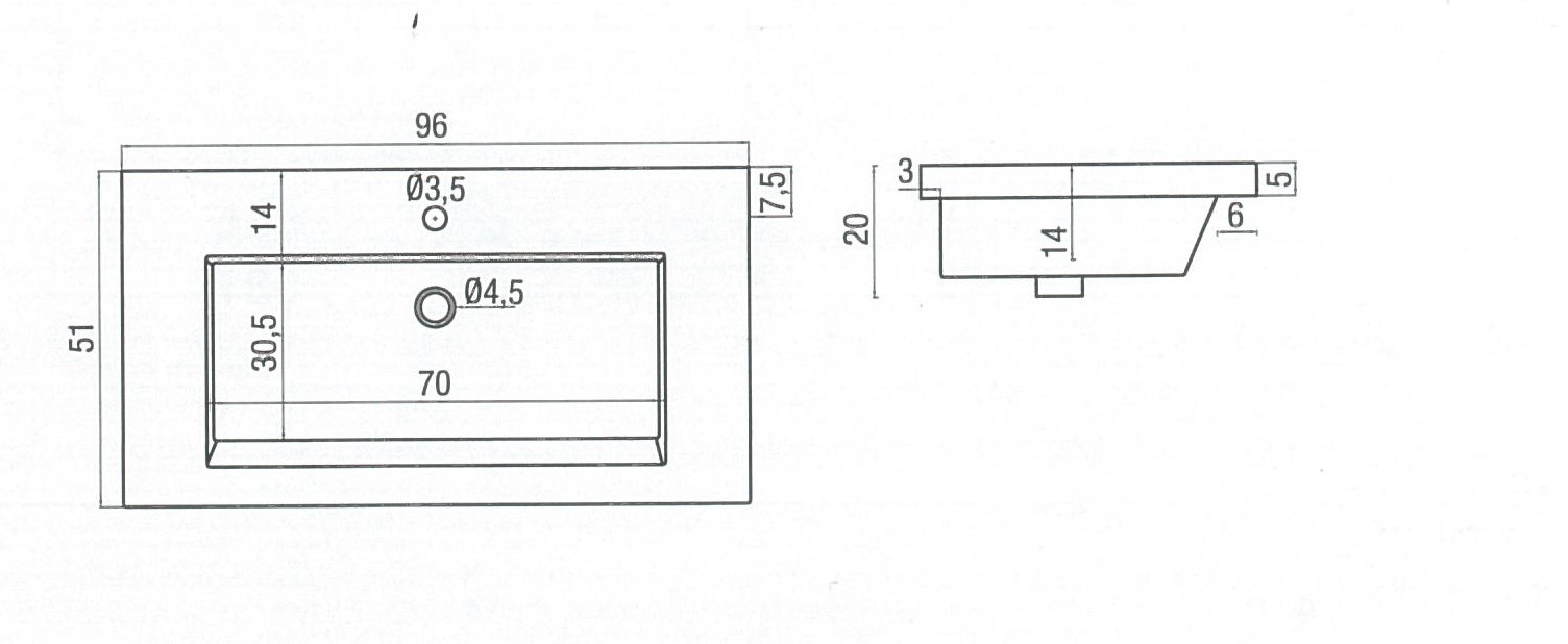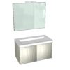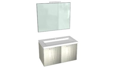 Mobile arredo bagno Archeda Light Skin di colore bianco, composto dai seguenti elementi: base sospesa con 2 ante Leli 5952 A (lunghezza cm 95, profondità cm 50, altezza 50); consolle ESSEQ8771 in ceramica (lunghezza cm 96, profondità cm 51, spessore cm 5) con vasca integrata centrale (lunghezza cm 70) con troppopieno, foro rubinetto centrale, ma piletta esclusa; specchiera sospesa modello 6635 (dimensioni cm 95x75) con profilo in alluminio (profondità cm 2,5), senza presa e interruttore, posizionabile sia verticalmente sia orizzontalmente; lampada NEW modello 6635 a led cromata con fascia luminosa (alimentatore interno al supporto) potenza 70 watt (larghezza cm 30, altezza cm 4 e profondità cm 9,7)..