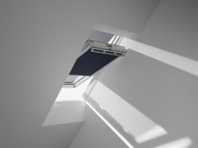 Soluzione Proteggi e Oscura Velux (78×118 cm.) Blu scuro con tenda parasole esterna manuale e tenda oscurante interna a rullo manuale DOP MK06 1100S