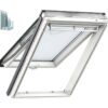 Finestra per tetti a falda GPU Tripla Protezione Velux in legno e poliuretano bianco, con doppia apertura vasistas/bilico manuale; è venduta unitamente al raccordo EDW per manti di copertura sagomata in alluminio, che garantisce la perfetta connessione tra il tetto e la finestra, alla cornice isolante BDX e al collare impermeabilizzante BFX.