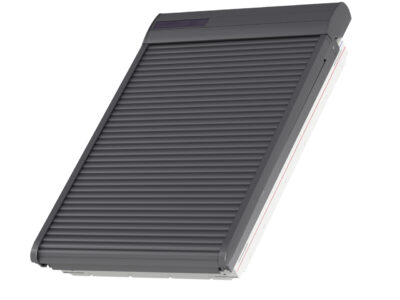 Tapparella INTEGRA solare costituita da un telo di solide lamelle in alluminio isolate con schiuma, per un isolamento acustico e termico ottimale. La versione solare è adatta anche per finestre manuali, in assenza di collegamento elettrico.